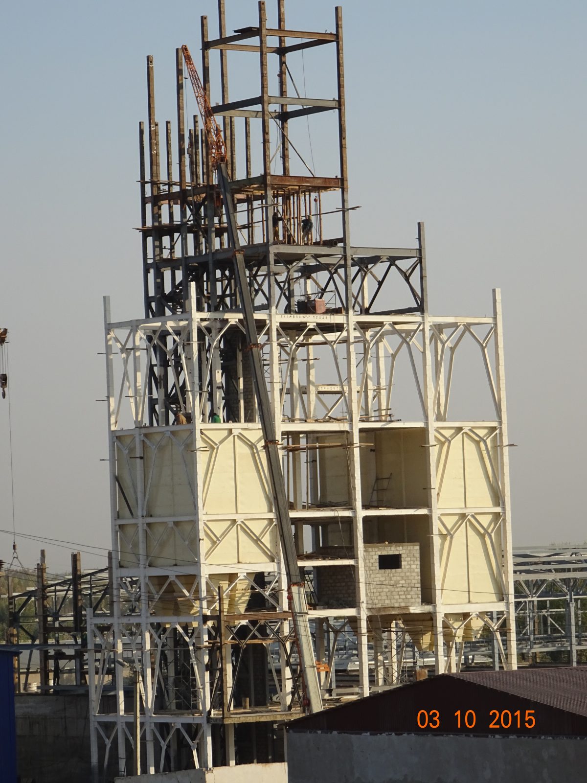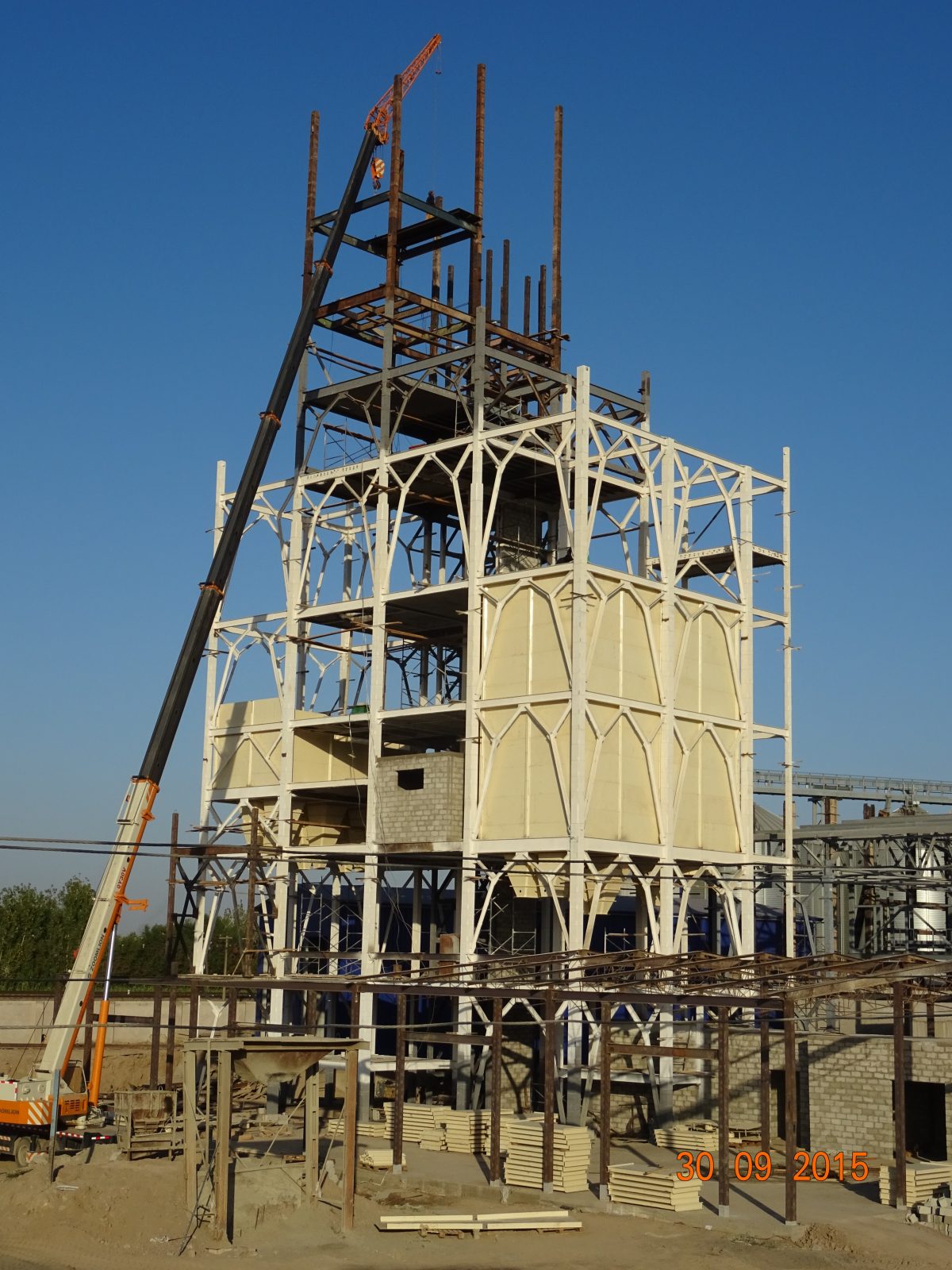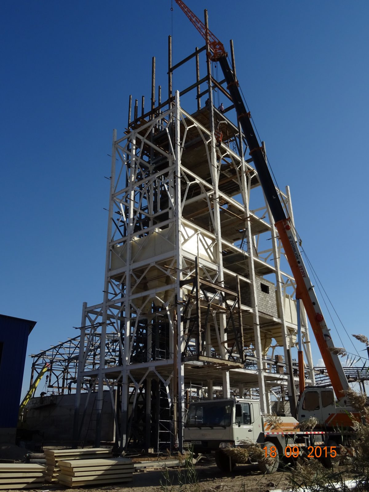 Montaż sliosów i konstrukcji stalowej nowo budowanej wytwórni pasz